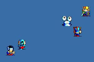 これらのアイコンを押すたびに、敵や味方に分類されたキャラが デスクトップに登場、画面を所狭しと動き回り、戦闘を繰り広げ ます。